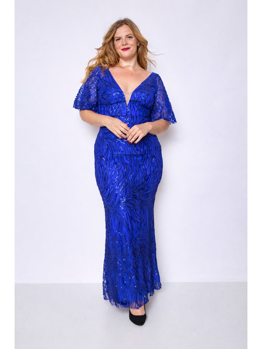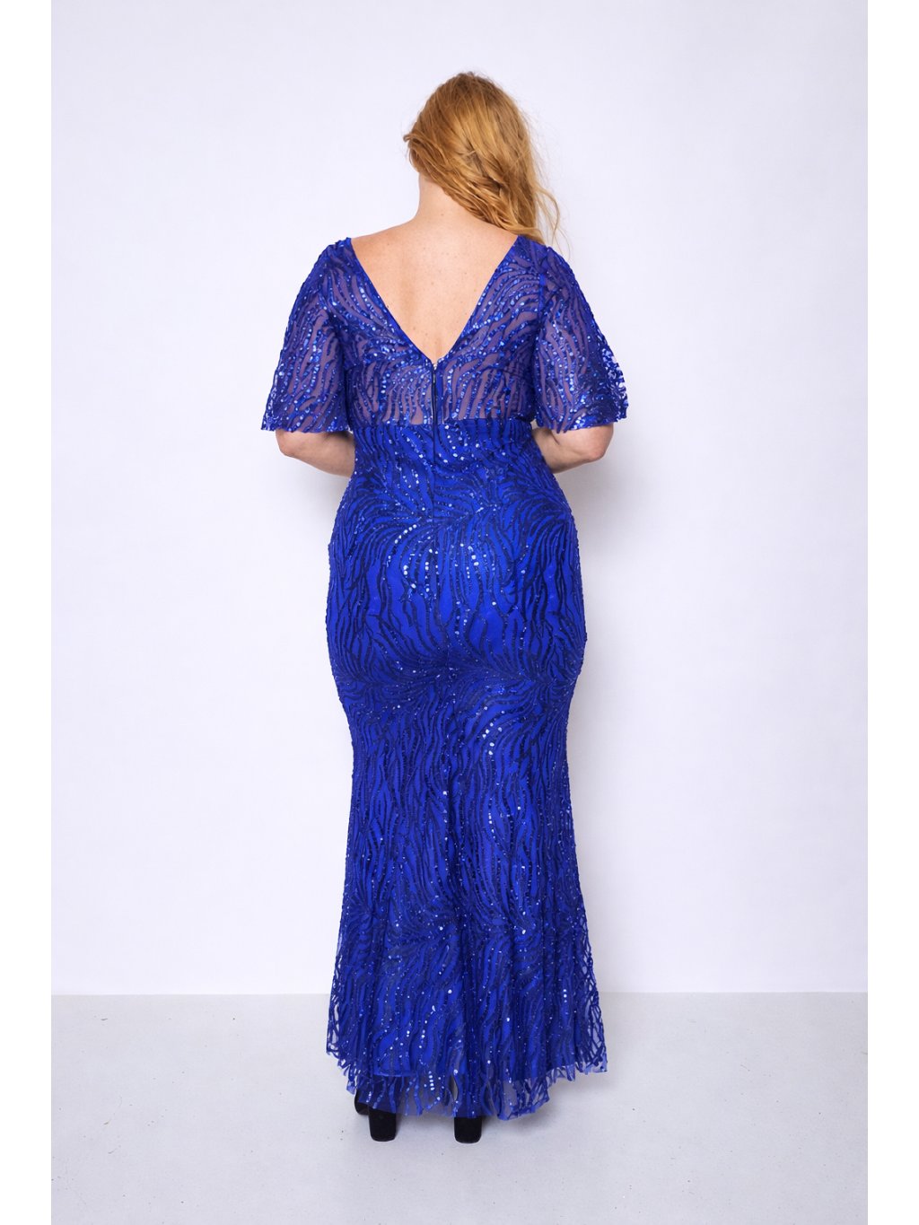 Dlouhé společenské šaty s flitry a rukávky – královská modř
