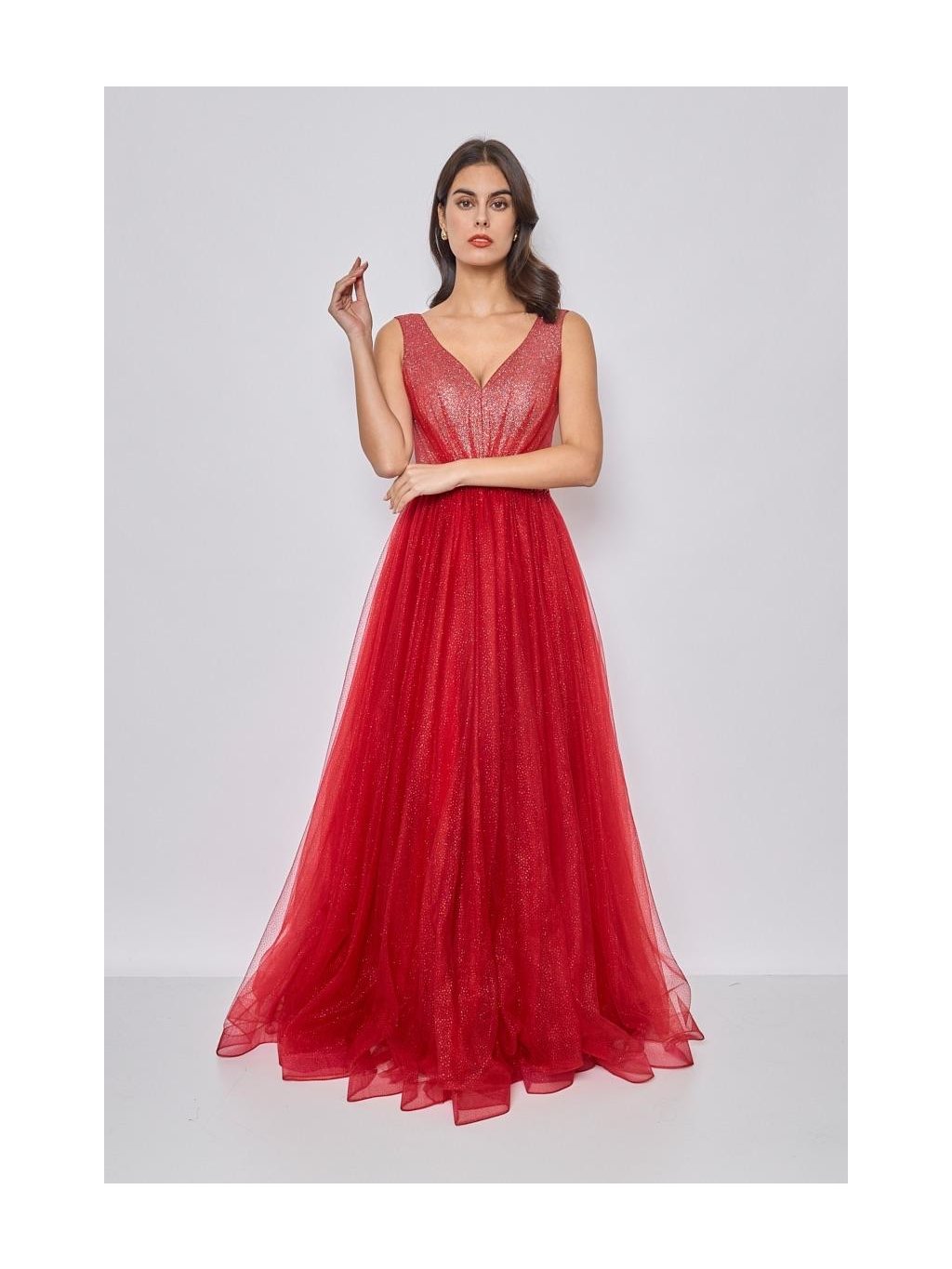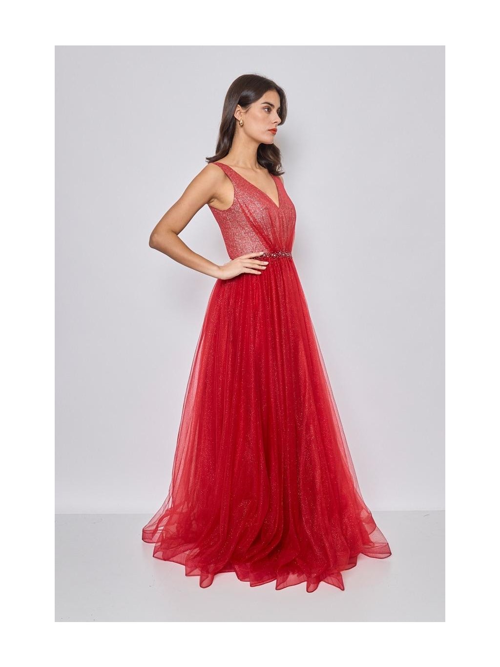 Šaty jsou ve zářivé červené barvě, která okamžitě upoutá pozornost. Barva je intenzivní, sytá a plná energie, což z těchto šatů dělá skvělou volbu pro večerní akce nebo společenské události.