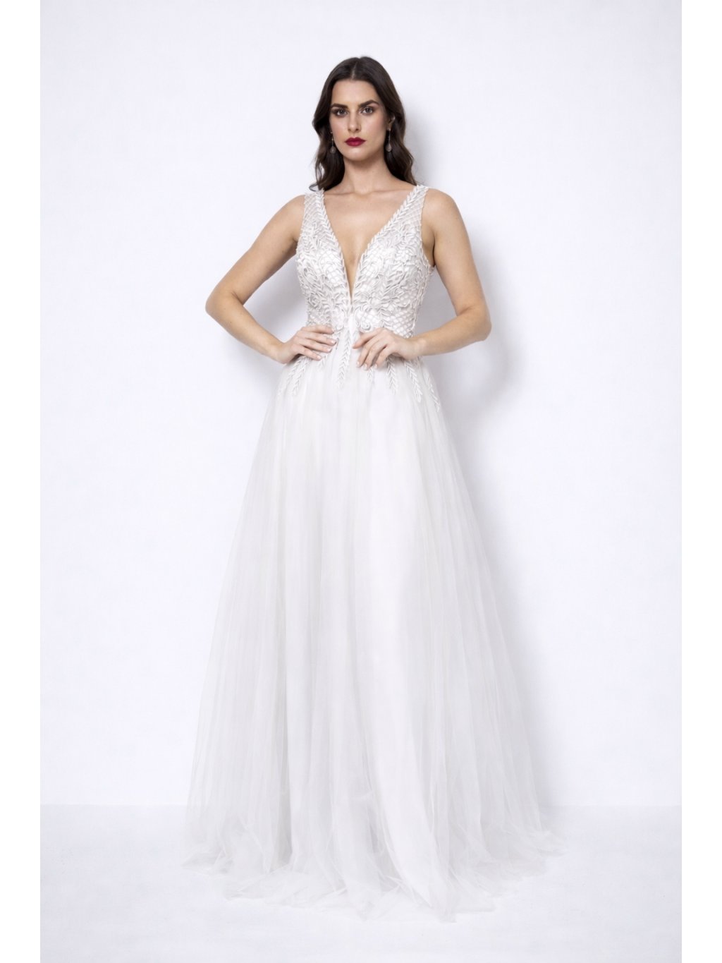 Zachyťte pohledy na každé slavnostní události s těmito dechberoucími večerními šaty . Šaty představují spojení elegance a rafinovanosti, které z vás udělají hvězdu večera. Hluboký výstřih ve tvaru V a nápadné krajkové zdobení na přední straně dodávají těmto šatům smyslný nádech. Plná tylu sukně, která plynule spadá až k zemi, zajišťuje královský vzhled a neskutečný pocit.