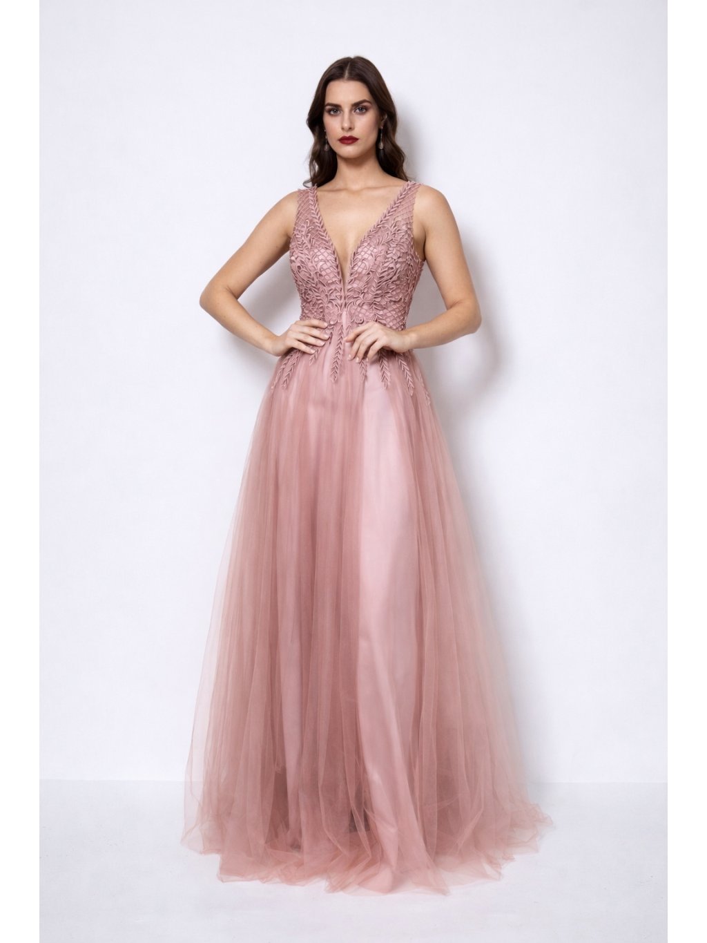Zachyťte pohledy na každé slavnostní události s těmito dechberoucími večerními šaty . Šaty představují spojení elegance a rafinovanosti, které z vás udělají hvězdu večera. Hluboký výstřih ve tvaru V a nápadné krajkové zdobení na přední straně dodávají těmto šatům smyslný nádech. Plná tylu sukně, která plynule spadá až k zemi, zajišťuje královský vzhled a neskutečný pocit.