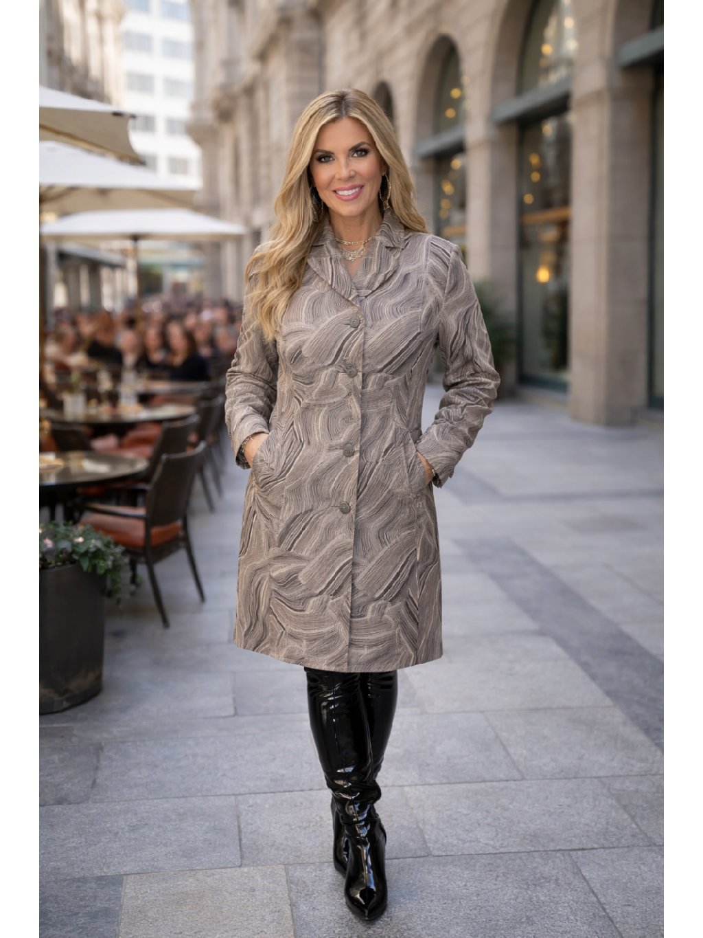 Elegantní dámský kabát v moderním vzorovaném designu je ideální volbou pro ženy, které chtějí vyniknout a zároveň se cítit pohodlně při každodenním nošení. Originální kombinace jemných tónů dodává kabátu luxusní vzhled, který snadno sladíte jak s ležérním, tak i elegantnějším outfitem.
